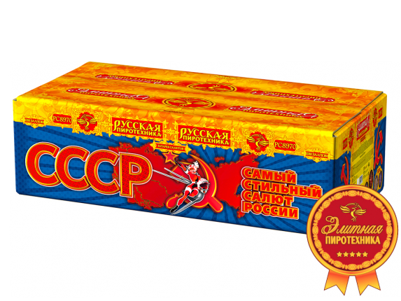 Фейерверк СССР – это еще одна восхитительная батарея салютов из каталога пиротехники магазина TorgSalut. Красочная картина фейерверка вам гарантирована – количество залпов 288 салюта СССР говорит о многом. Перед тем как купить фейерверк, можете посмотреть фото и видео салюта РС890 СССР. Со списком уникальных пиротехнических эффектов фейерверка вы можете ознакомиться по вкладке ДОПОЛНИТЕЛЬНО.